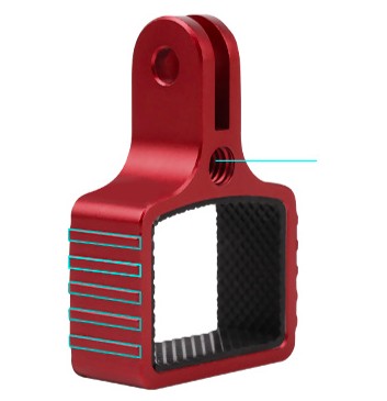 Uchwyt zawiera gwint 1/4 cala, a także standardowe mocowanie znane z kamer sportowych firmy GoPro.
