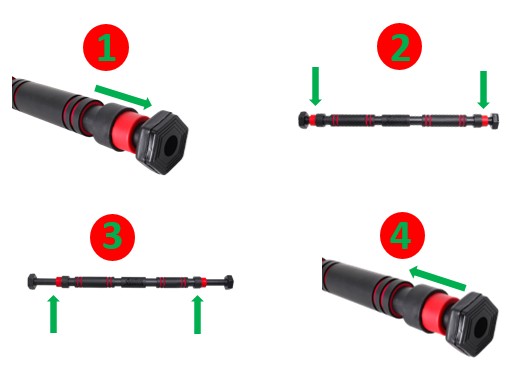 ✅Drążek jest niezwykle łatwy w montażu. Wystarczy odciągnąć obejmy zabezpieczające, a następnie równomiernie wykręcać ramiona drążka. Pozwoli nam to dopasować drążek do szerokości drzwi tak, aby sprzęt się nie zsuwał.