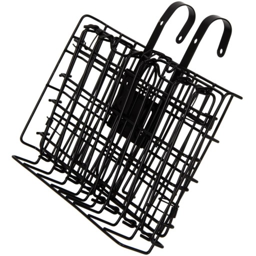 Koszyk wykonany z metalu pokryty czarna farbą. Dzięki sprężynom jego złożenie i rozłożenie jest bardzo proste. Wystarczy zwolnić blokadę a koszyk automatycznie się otworzy. Koszyk po złożeniu będzie zajmował bardzo mało miejsca i będzie łatwy do przechowywania.