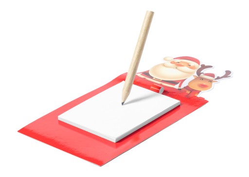 Notes magnetyczny z 40 czystymi kartkami i figurkami świątecznymi na górze. W zestawie mini drewniany ołówek.