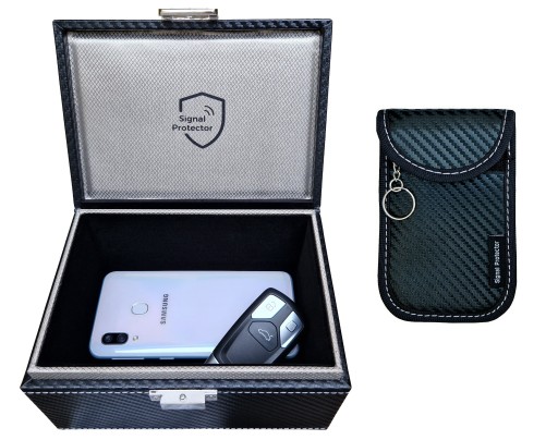 ✅ Produkty Signal Protector® z oferowanego zestawu działają na zasadzie klatki Faradaya. Po włożeniu klucza do boxu lub etui Signal Protector® sygnał blokowany jest przez najwyższej jakości certyfikowany materiał ekranujący. Dzięki temu potencjalny złodziej nie przechwyci sygnału z Twojego klucza.