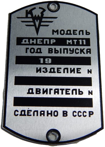 Tabliczka znamionowa do motocykli dniepr Mt-11