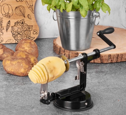 - dzięki maszynce można w prosty sposób przygotować zakręcane frytki ,chipsy jak również pokroić w sposób dekoracyjny warzywa np. jabłka ,cukinie.