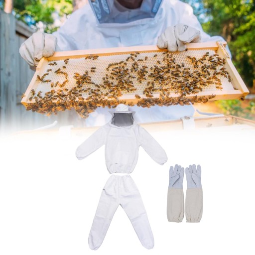 [Ochrona]: Kombinezon pszczelarski zawiera ubrania i czapki zapobiegające zakopywaniu się os, szerszeni, pszczół itp. w ubraniach i kłuciu skóry.