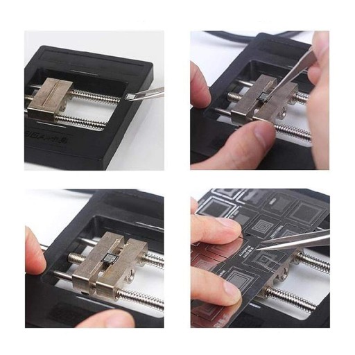 ✅ Magnesy i blaszki do uchwytu BGA: Uchwyt BGA posiada wbudowane dwa mocne magnesy, co czyni go idealnym do montażu sit typu BGAP (BGA Plate). Do docisku służą dwie blaszki, które również są w zestawie.
