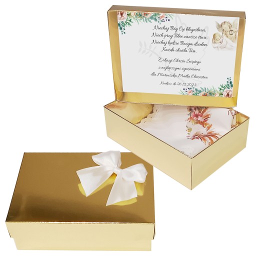 Zapraszamy do zapoznania się z naszym wyjątkowym pudełkiem na szatkę, które jest nie tylko praktyczne, ale również stanowi elegancki element pamiątki chrztu. To doskonały sposób na przechowywanie i ochronę delikatnej szatki dla Waszego małego skarbu.