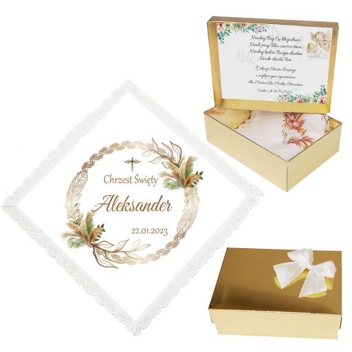 Zapraszamy do zapoznania się z naszym wyjątkowym pudełkiem na szatkę, które jest nie tylko praktyczne, ale również stanowi elegancki element pamiątki chrztu. To doskonały sposób na przechowywanie i ochronę delikatnej szatki dla Waszego małego skarbu.