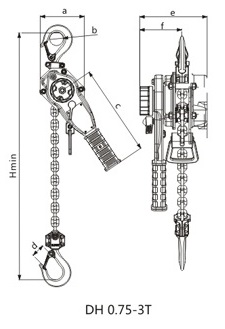 Wciągnik posiada utwardzony łańcuch G80 4,0 x 12mm testowany przy obciążeniu 750 kg.
