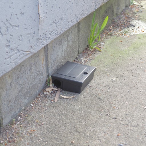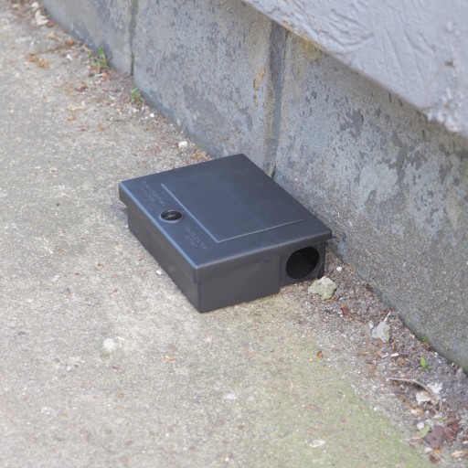 Stację deratyzacyjną na myszy można otworzyć tylko za pomocą specjalnego klucza, dzięki czemu dzieci, ani nie powołani ludzie nie dostaną się do karmy.