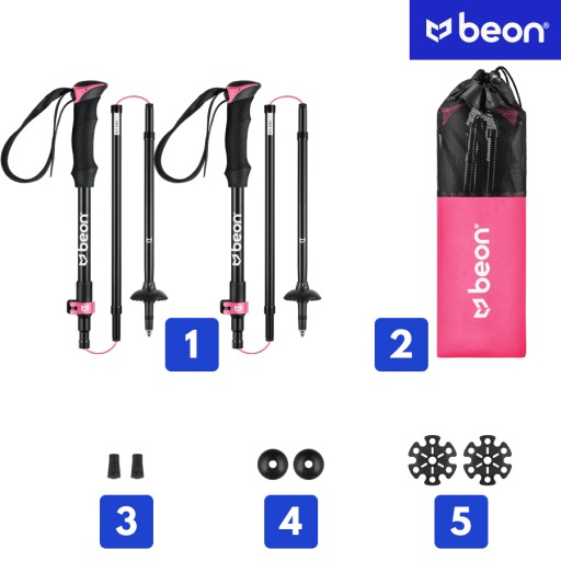 1️⃣ 2x kije trekkingowe Beon Fold Lite Pink