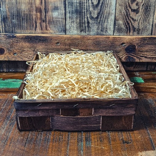 - Ozdobna wełna drzewna, która wypełnia kosz zapachem drewna