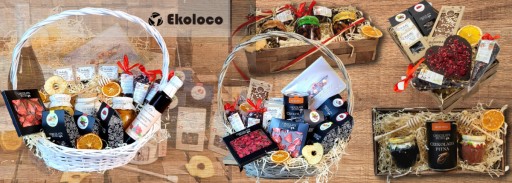 - Całość zapakowana jest w folię celofanową co sprawia, że produkty nie ruszają się w koszu a prezent nabiera blasku