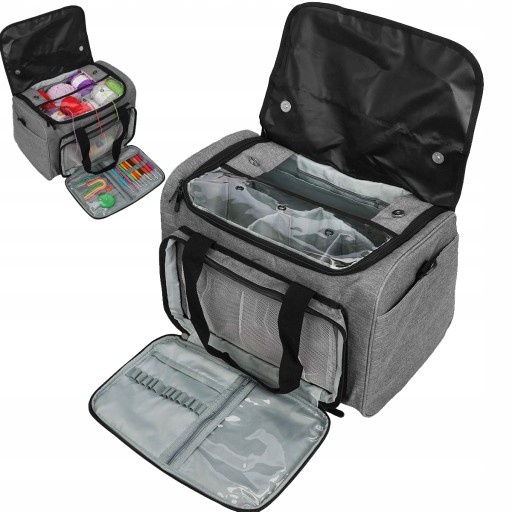 СУМКА ДЛЯ ВЯЗАНИЯ ПРЯЖЕЙ, КРЮЧКОМ, СПИНАМИ, БОЛЬШАЯ, СЕРАЯ