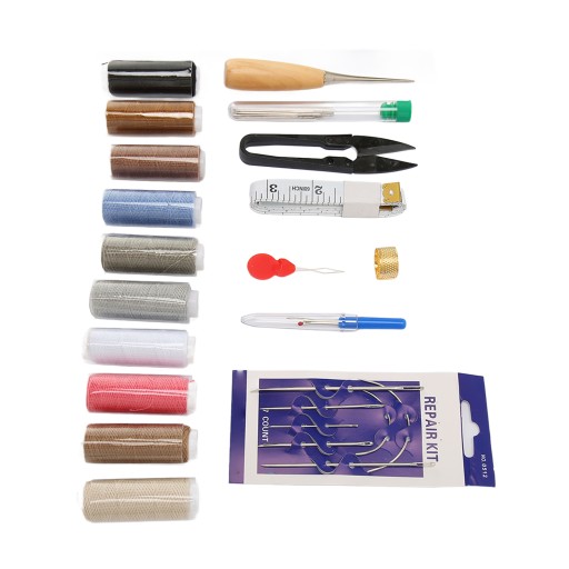 1. Zestaw do obróbki skóry: ten zestaw do szycia skóry zawiera 10 rolek woskowanej nici, 1 nożyczki, 1 naparstek, 1 szydło, 32 igły, 1 butelkę z igłą, 1 miarkę, 1 x zmywacz do nici, 1 x nawlekacz, 1 torbę do przechowywania . Bogate narzędzia mogą zaspokoić Twoje różne potrzeby, bardzo odpowiednie dla początkujących i podróżników.