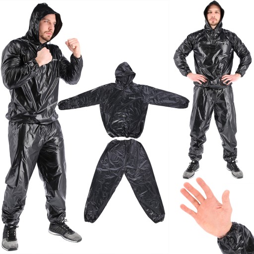 - DDSS12 HMS to sauna dres. Świetne rozwiązanie, zwłaszcza dla zawodników sportów walki. Sprawdzi się, w trakcie przygotowań, kiedy zawodnik chce w szybkim czasie zmniejszyć ciężar swojego ciała. Trenując w dresie powodujemy, że znacznie szybciej wzrasta temperatura ciała. Skutkiem tego, dużo bardziej się pocimy, więc wytrącamy wodę z organizmu. Jest to sposób, na końcowe osiągnięcie pożądanej wagi i w bardzo szybkim tempie, zrzucenie 2-3 kilogramów. Sprawdzi się również, jako utrudnienie treningu. Zwiększenie temperatury podczas treningu sprawia, że organizm więcej energii, poświęca na schłodzenie ciała, tym samym ćwiczenia stają się, dużo bardziej wyczerpujące.Dres składa się z dwóch części, spodni i bluzy z kapturem. Materiał jest wygodny, wytrzymały, nie blokujący ruchów i nieprzepuszczający powietrza. Dzięki ściągaczom na nadgarstkach, w pasie i na kostkach oraz dzięki zamkowi w bluzie, maksymalnie blokujemy dopływ powietrza do ciała.DSS12 sprawdzi się w każdej dyscyplinie sportu, niezależnie czy będzie to wysiłek wydolnościowy czy siłowy.