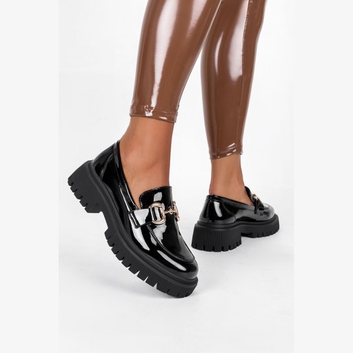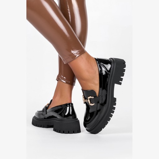 Czarne mokasyny damskie lakierowane model G23WX1-B zostały wykonane z wysokogatunkowej, lakierowanej skóry ekologicznej co gwarantuje doskonałą jakość, wygodę i dopasowanie do stopy. Mokasyny ze sprzączką to stylowe buty, które są popularne w modzie damskiej. Lakierowana powierzchnia nadaje im efektowny i błyszczący wygląd. Złota sprzączka to ozdobny element zamocowany na wierzchu mokasynów dodający im elegancji i charakteru. Są idealne do noszenia na bardziej formalne okazje, takie jak uroczystości, spotkania biznesowe czy wieczorne wyjścia. Dodają one szyku i elegancji do stroju, szczególnie gdy są dobrze dobrane do pozostałych elementów ubioru. Mokasyny na bieżnikowej podeszwie wyposażone w wypustki, zapewniają lepszą przyczepność na różnych powierzchniach, zwłaszcza na nierównym terenie lub podczas deszczowej pogody. Są to idealne buty dla osób, które szukają połączenia stylu, komfortu i praktyczności. W sklepie Casu znajdziesz wiele wariantów tego modelu idealnego na wiosnę i jesień.
