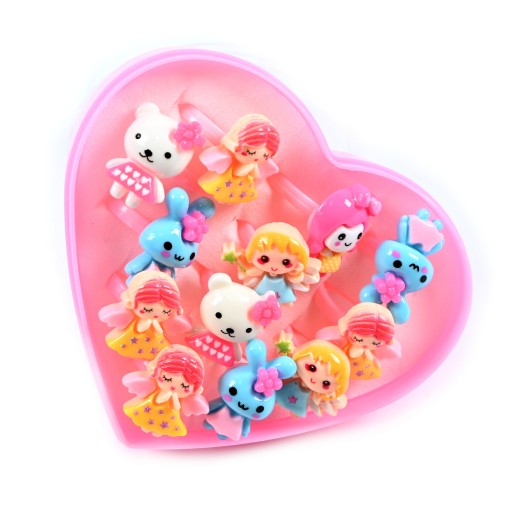 PIERŚCIONKI DLA DZIEWCZYNEK ANIOŁEK WRÓŻKA MIŚ ZESTAW PIERŚCIONKÓW 12SZT