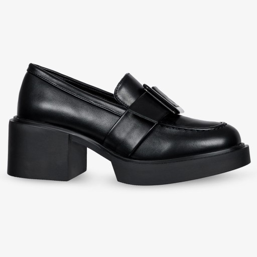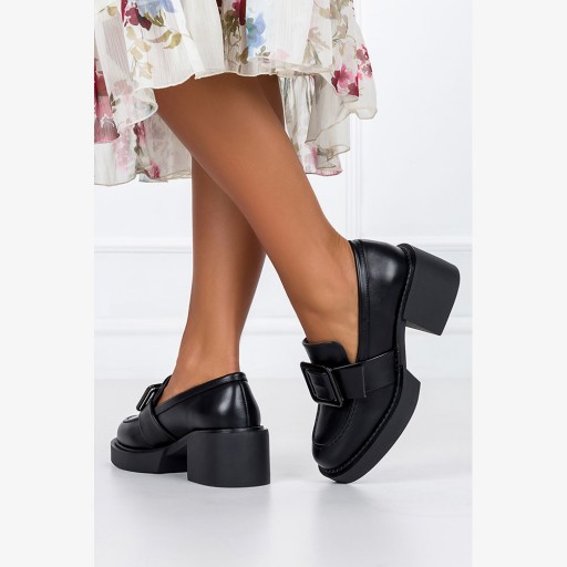 CZARNE MOKASYNY PÓŁBUTY DAMSKIE NA OBCASIE SŁUPKU ELEGANCKA KLAMRA r 38
