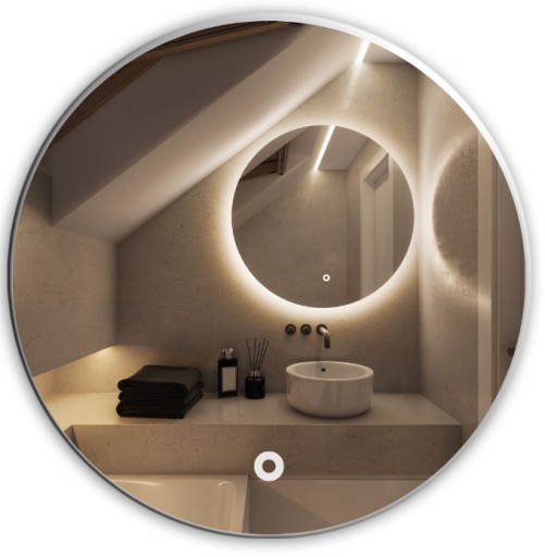КРУГЛОЕ ЗЕРКАЛО 80, СЕНСОРНЫЙ ПЕРЕКЛЮЧАТЕЛЬ СО СВЕТОДИОДНОЙ ПОДСВЕТКОЙ