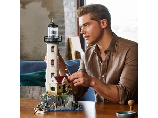 - Model kolekcjonerski Zmechanizowana latarnia (21335) – Rzuć światło na swoją kreatywność dzięki tej niezwykle szczegółowej latarni morskiej do zbudowania na skale z molo i schodami, jaskinią oraz chatką latarnika