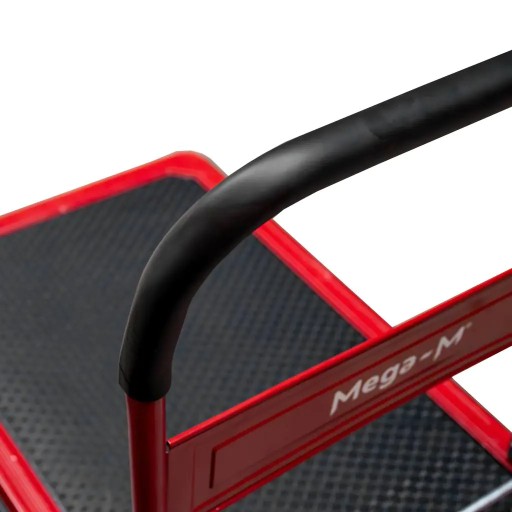 Wózek platformowy Mega-M posiada platformę transportową o wymiarach 92x61 cm z antypoślizgową powierzchnią, co sprawia, że przewożony towar stoi stabilnie (zapobiega przemieszczaniu się ładunku podczas transportu).
