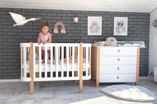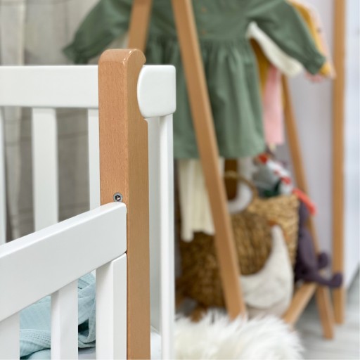 Łóżeczko Veres Monaco ze stylowej kolekcji mebli dziecięcych dla noworodków prezentowane jest w uniwersalnych kolorach, odpowiednich zarówno dla dziewczynek, jak i chłopców.