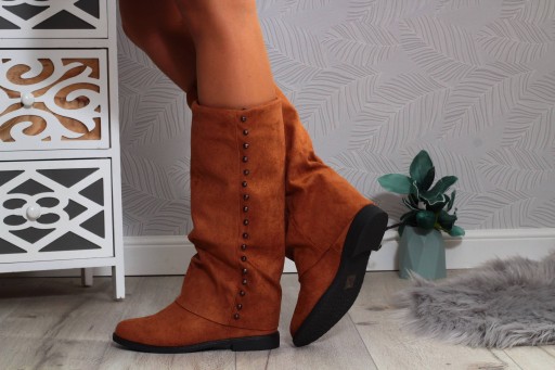KOZAKI DAMSKIE BOTKI OCIEPLANE ZAMSZOWE WYSOKIE Marka inna