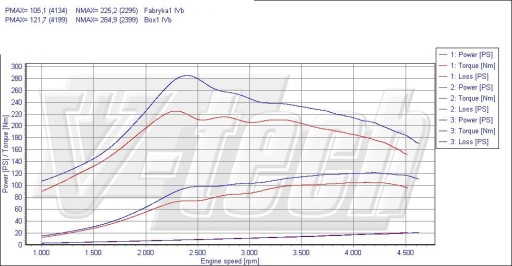 - Czy lepszy jest chip tuning, czy powerbox? Modyfikacja Powerboxem polega na zmianie parametrów odczytywanych przez czujniki samochodu tak, aby sterownik silnika wprowadził korektę ciśnienia doładowania i dawki (lub ciśnienia i pośrednio przez to - dawki) paliwa. Power box zmienia więc dwa parametry główne, a nie trzy, jak chip tuning. Niekiedy pośredni sposób zmiany parametrów nazywany jest "fałszowaniem wskazań" i przedstawiany jako dowód na wyższość chip tuningu nad power boxami – ale z programistycznego punktu widzenia dla końcowego efektu jest to obojętne, czy nowe parametry są wpisane bezpośrednio w mapy, czy uzyskiwane w sposób pośredni – pod warunkiem, że są dobrze zaprogramowane. PowerBox ma swoje mapy korekt dwóch wymienionych wyżej parametrów i realizuje je stosownie do obciążenia i obrotów silnika, dokładnie tak samo jak robi to chip. Nie da się rozpoznać podczas jazdy, czy auto ma box czy chip, choć dobrze wykonany chip z racji modyfikacji jednego parametru więcej (sterowania kątem wtrysku) i szerszych możliwości wpływu na dawkę paliwa da silniejsze efekty (nieco wyższą moc i moment obrotowy). Zalety power boxa – może być zdalnie włączany i wyłączany (za pomocą pilota, telefonu lub tabletu z Android, albo iPhone), można go przełożyć z samochodu do samochodu, nawet pomiędzy różnymi markami samochodów (choć potrzebna może być zmiana wiązki na dopasowaną do innej marki oraz zmiana map tuningowych w boxie). Tuning box można też zdemontować z samochodu przed autoryzowanym przeglądem i jest to dość proste ponieważ wiązki power boxa mają oryginalne fabryczne wtyczki i łatwo się wpinają i wypinają. Wiodący producenci mają video na swoich stronach, pokazujące instalację w poszczególnych modelach aut.