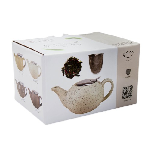 Dzbanek z zaparzaczem został wykonany z wysokiej jakości ceramiki szkliwionej. Całkowicie bezpieczny dla zdrowia i przeznaczony do kontaktu z żywnością. Dołączone nierdzewne sitko umożliwia wydobycie naturalnego i niezwykle mocnego aromatu zaparzanych herbat lub ziół. Idealnie pasuje do każdego rodzaju wystroju - posiada ciekawy, a zarazem klasyczny design. Przydatny w każdym domu oraz łatwy w utrzymaniu czystości - można myć w zmywarce.