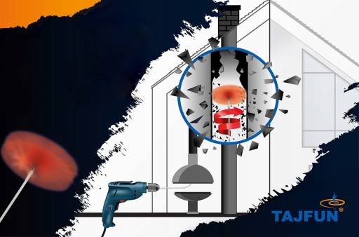Zestaw Tajfun został przystosowany do czyszczenia komina od dołu, od strony urządzenia grzewczego. Nie potrzeba wchodzić na dach, dzięki temu z łatwością wyczyścić komin o dowolnej długości. Oczywiście, zestaw można również używać od góry komina.