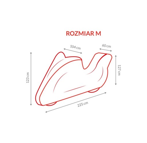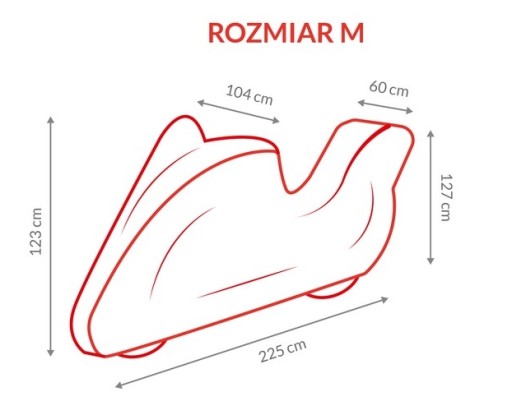 Pokrowiec w przedniej oraz tylnej części posiada solidne gumy ściągające o grubości 1.5cm dzięki czemu idealnie dopasowuje się do kształtu motocykla.