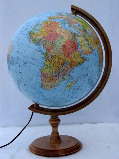 Globus 320 mm podświetlany mapa polityczna, stopka drewniana