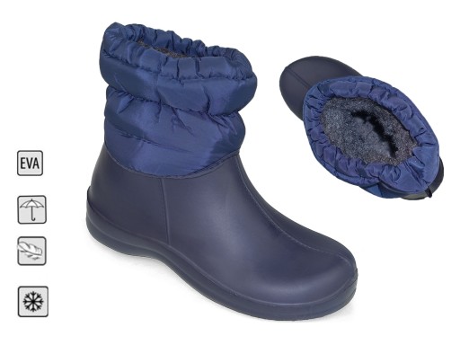 Dolna część buta wykonana jest lekkiej ,wodoodpornej i termoizolacyjnej pianki EVA ,cholewka natomiast wykonana z miękkiego materiału typu ortalion gwarantuje bardzo dobre dopasowanie do nogi oraz nieprzemakanie na śniegu. Wewnątrz ocieplone są na całej powierzchni kożuszkiem który zapewnia ciepło w chłodne dni.