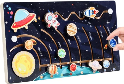 Unikalna i jedyna w swoim rodzaju zabawka edukacyjna układ słoneczny w postaci labiryntu do przesuwania.
