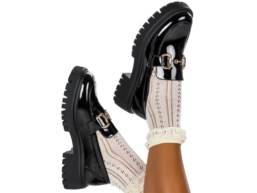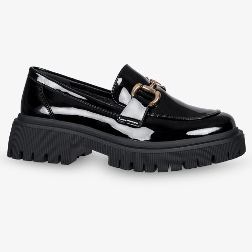 Czarne mokasyny damskie lakierowane model G23WX1-B zostały wykonane z wysokogatunkowej, lakierowanej skóry ekologicznej co gwarantuje doskonałą jakość, wygodę i dopasowanie do stopy. Mokasyny ze sprzączką to stylowe buty, które są popularne w modzie damskiej. Lakierowana powierzchnia nadaje im efektowny i błyszczący wygląd. Złota sprzączka to ozdobny element zamocowany na wierzchu mokasynów dodający im elegancji i charakteru. Są idealne do noszenia na bardziej formalne okazje, takie jak uroczystości, spotkania biznesowe czy wieczorne wyjścia. Dodają one szyku i elegancji do stroju, szczególnie gdy są dobrze dobrane do pozostałych elementów ubioru. Mokasyny na bieżnikowej podeszwie wyposażone w wypustki, zapewniają lepszą przyczepność na różnych powierzchniach, zwłaszcza na nierównym terenie lub podczas deszczowej pogody. Są to idealne buty dla osób, które szukają połączenia stylu, komfortu i praktyczności. W sklepie Casu znajdziesz wiele wariantów tego modelu idealnego na wiosnę i jesień.