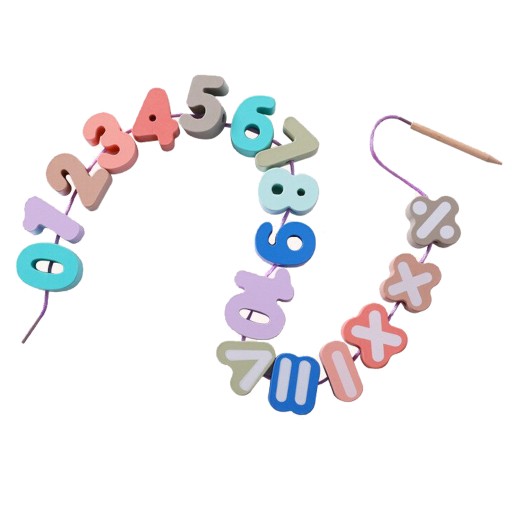 KORALIKI KLOCKI DREWNIANE DO NAWLEKANIA MONTESSORI ALFABET CYFRY MONTESSORI
