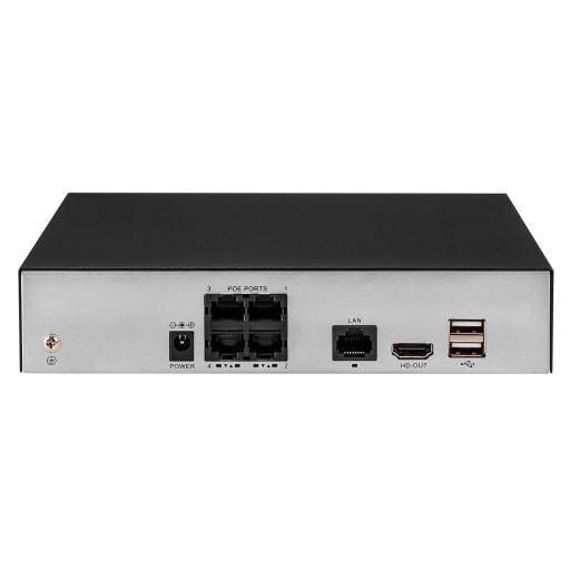 Nagrywarka obsługuje do 9 kamer, posiada 4 wbudowane porty Poe co umożliwia nam podłączenie bezpośrednio 4 kamer, a w przypadku gdy będziemy chcieli rozbudować nasz system można albo dodać pozostałe 5 kamer po sieci, albo za pomocą dodatkowego switcha PoE.