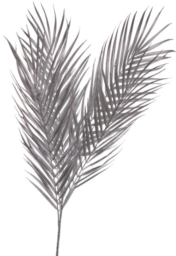 Oferta przedstawia gałązkę z pięcioma liśćmi palmy. Produkt został wykonany z tworzywa sztucznego w kolorze srebrnym. Liść doskonały jako wypełniacz do wyrobów florystycznych, oraz kompozycji kwiatowych.