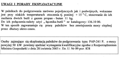 Palnik PAP-241P jest zasilany propano-butanem i powietrzem pobieranym z atmosfery; znajduje zastosowanie w pracach dekarskich przy układaniu papy termozgrzewalne jak również z innych pracach wymagających skoncentrowania płomienia o znacznej energii np.: podgrzewania, opalania powierzchni, rozmrażania, topienia metali (np. ołowiu) oraz napraw pęknięć i ubytków w powierzchniach asfaltowych. Wykonywane są w wersji z dyszą pojedynczą lub podwójny o różnych długościach rurek gazowych.