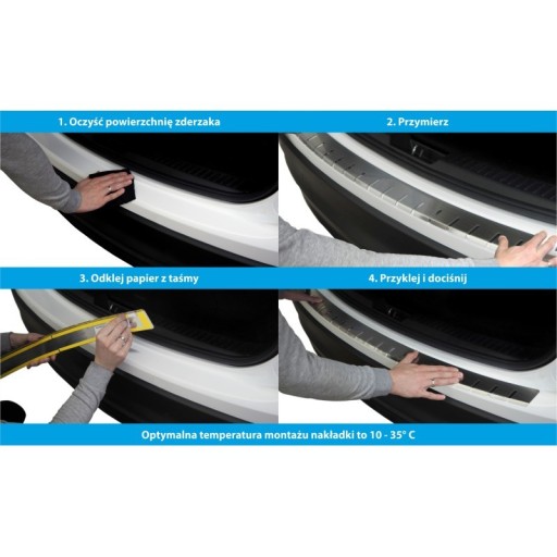 - Aby klej taśmy dwustronnej dobrze się zwulkanizował i zapewnił mocne i trwałe trzymanie nakładek, pamiętaj aby elementy umieszczać na samochodzie w temperaturze otoczenia co najmniej 10 stopni Celsjusza.