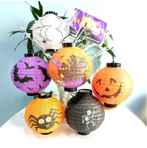 ГИРЛЯНД БУМАЖНОГО ФОНАРЯ НА ХЭЛЛОУИН СО СВЕТОДИОДНОЙ ПОДСВЕТКОЙ, 6 СТИЛЕЙ