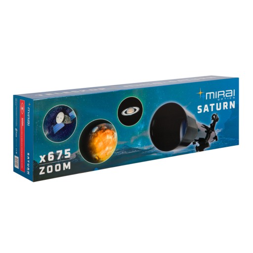 Mirai Optics Saturn to niezwykle dokładny teleskop, który dzięki swoim rozmiarom i zaawansowanej optyce gwarantuje niesamowite możliwości obserwacji. Zastosowany montaż AZ-3 pozwoli na precyzyjne nawigowanie nawet przy maksymalnych powiększeniach, które w tym teleskopie mogą wynieść aż 675x. Dzięki temu zobaczysz większość ciał niebieskich układu słonecznego w bardzo wysokiej jakości jak również niektóre z elementów tzw. głębokiego nieba. Dodatkowo Saturn pozwala na obserwację celów naziemnych – krajobrazu, zwierząt, ruchu drogowego czy powietrznego z niesamowitą precyzją. Dołączone akcesoria dodatkowo poszerzają możliwości działania naszego teleskopu.