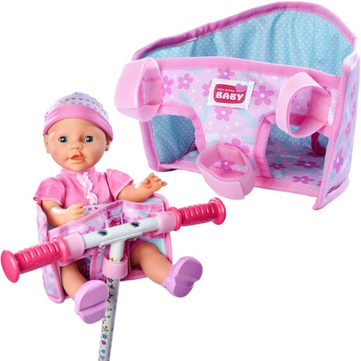 Posiada wszyte pasy bezpieczeństwa, które umożliwia stabilne utrzymanie się w nim lalki. Przymocować siedzisko do rowerka lub hulajnogi dziewczynki można za pomocą rzepów. Przeznaczone jest dla lalek o wysokości 30-43 cm.