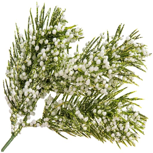 - 1 drucik posiadający 3 pęki świerku, a do nich przyczepione są drobne, styropianowe kuleczki i brokat, który pięknie się mieni.