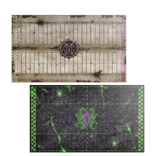 Dwustronna plansza z podziałem na pola, do rozgrywek figurkowej gry bitewnej Blood Bowl. W pudełku znajdziesz dwustronną planszę, z dwoma boiskami do gry Blood Bowl. Są tu także dwie dwustronne plansze graczy.