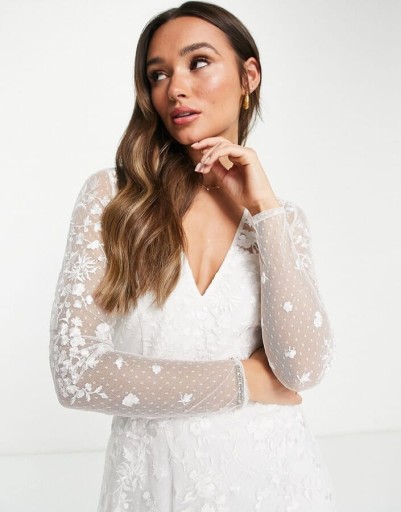 БЕЛОЕ ПЛАТЬЕ ASO EDITION С V-образным вырезом и вышивкой (36)