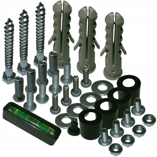 ℹ️Zestaw zawiera wszystkie niezbędne śruby, podkładki dystansowe oraz kołki montażowe, które umożliwiają umocowanie go do ściany.