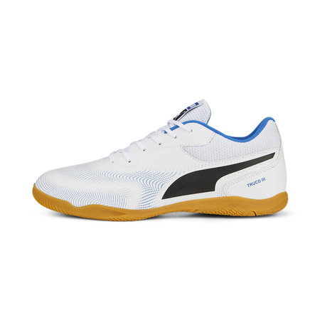 Lekka, lecz trwała cholewa z PU . Klasyczna konstrukcja języka pasuje do różnych kształtów stóp. Niezostawiająca śladów gumowa halowa podeszwa zewnętrzna. IT: Podeszwa do treningów na hali..