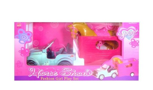Auto z przyczepą i koniem