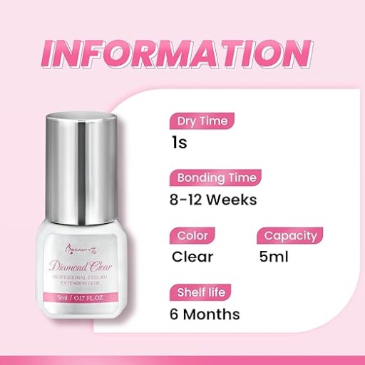 - Szybka przyczepność : przezroczysty klej do rzęs Beauty7 pozwala na szybki czas utwardzania około 1-2 sekund i okres trwałości do 6-7 tygodni. Szybki czas utwardzania kleju pozwala ekspertom w przedłużaniu rzęs na szybszy proces.
